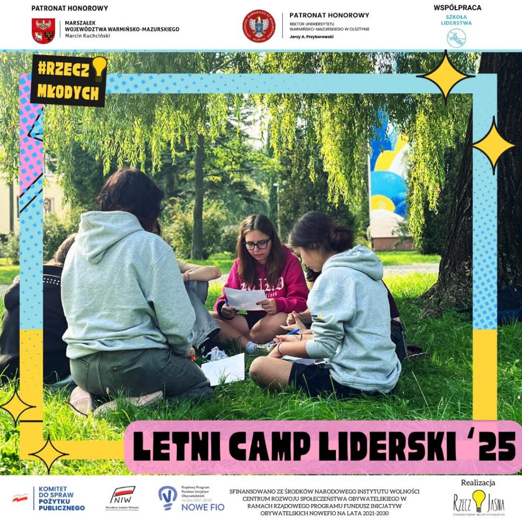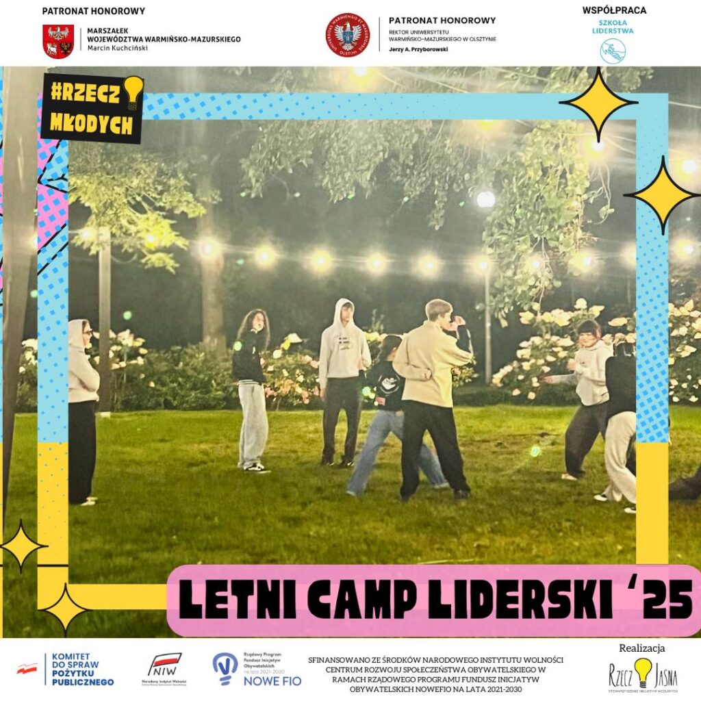 Były warsztaty, gry symulacyjne i praca w grupach, ale także rozmowy o tym, co znaczy być liderem i liderką w regionie takim jak Warmia i Mazury. Młodzi wyznaczali cele, odkrywali swoje zasoby i planowali, jak je wykorzystać, by zmieniać swoje społeczności. Nie zabrakło też integracji – wspólne wieczory, rozmowy i śmiech (także w towarzystwie niezliczonej liczby komarów).