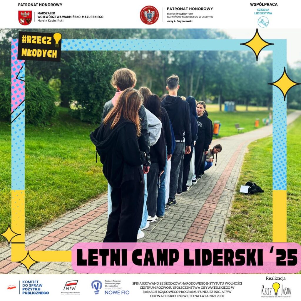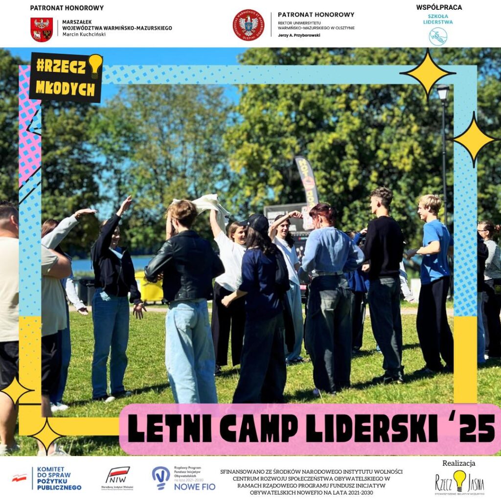 Tak wyglądał nasz Letni Camp Liderski #RzeczMłodych (25–29 sierpnia 2025). Spotkali się tu młodzi liderzy i liderki z całego województwa – od Ełku po Jarnołtowo, od Olsztyna po Żabi Róg i oczywiście Ostródę.