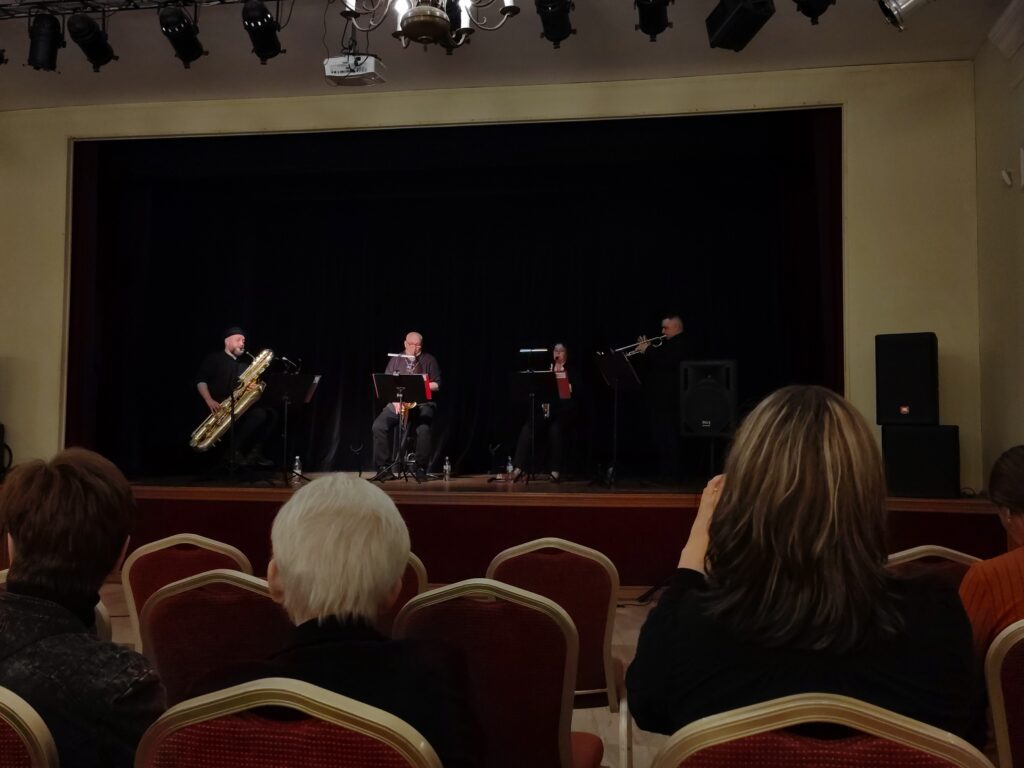 Później, kiedy za oknami panował deszcz i chłód, w ciepłej i eleganckiej sali, rozbrzmiała orkiestra głosów – łącząca ludową gwarę z poezją pisaną przez wieszczów poprzednich pokoleń. Takie fundamenty postawił Zamkowy Chór Kameralny, pod batutą Joanny Jaskółowskiej. Następnie scenę przejął kwartet Jazzie Square. Artyści zaprosili nas do świata muzyki różnorodnej, lecz wydobywającej się wyłącznie z instrumentów dętych, wprowadzając słuchaczy w jazzową zadumę. Zadumę, którą za chwilę ożywiły ogień i taniec.