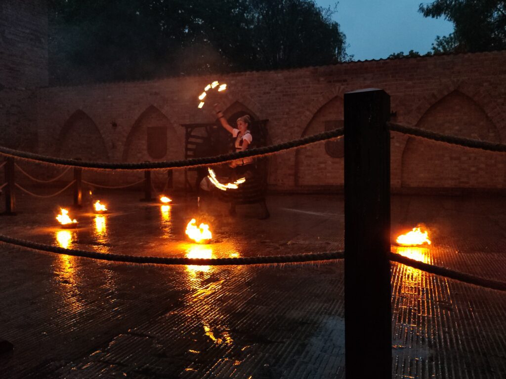 I tak od samego rana ostródzki zamek tętnił życiem. Rodzice z dziećmi mogli doświadczyć historii bezpośrednio, wykuwając monety czy biorąc udział w warsztatach ceramiki raku, przygotowanych przez pracownię dEko Sztuki. Młodzież wspólnie przemierzała nasz region, nie w trzech nudnych wymiarach przestrzeni, lecz w czwartym – czasie, dzięki wystawom stałym. Dorośli spędzili dzień w gronie znajomych twarzy, w zamkowych piwnicach na wystawie czasowej o kuszącej nazwie ,,Przedpiekle – wystawa narzędzi kar i tortur”.
