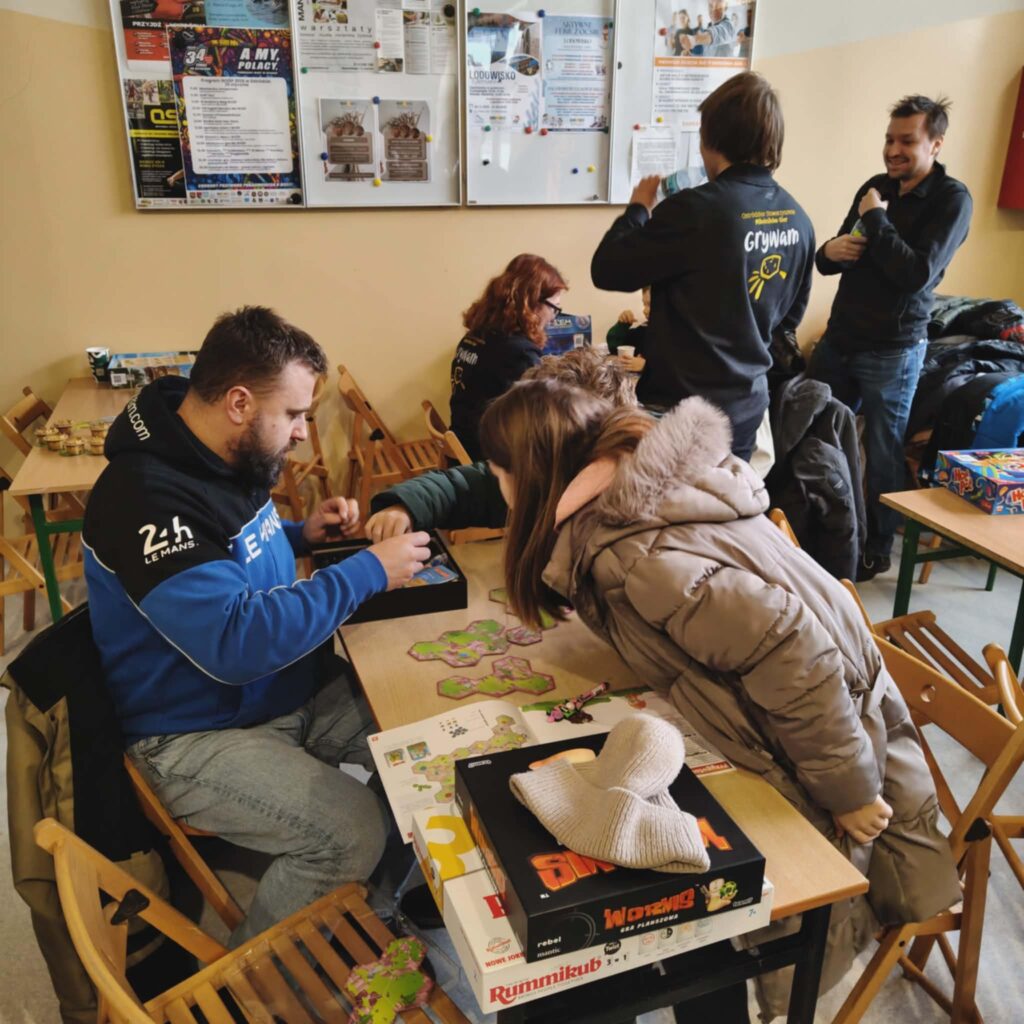 Równolegle w mniejszej hali czekały dmuchańce dla najmłodszych oraz stanowisko straży pożarnej, gdzie można było na chwilę zamienić się w strażaka! A w holu – gry planszowe z GryWam, loterie i słodki poczęstunek.